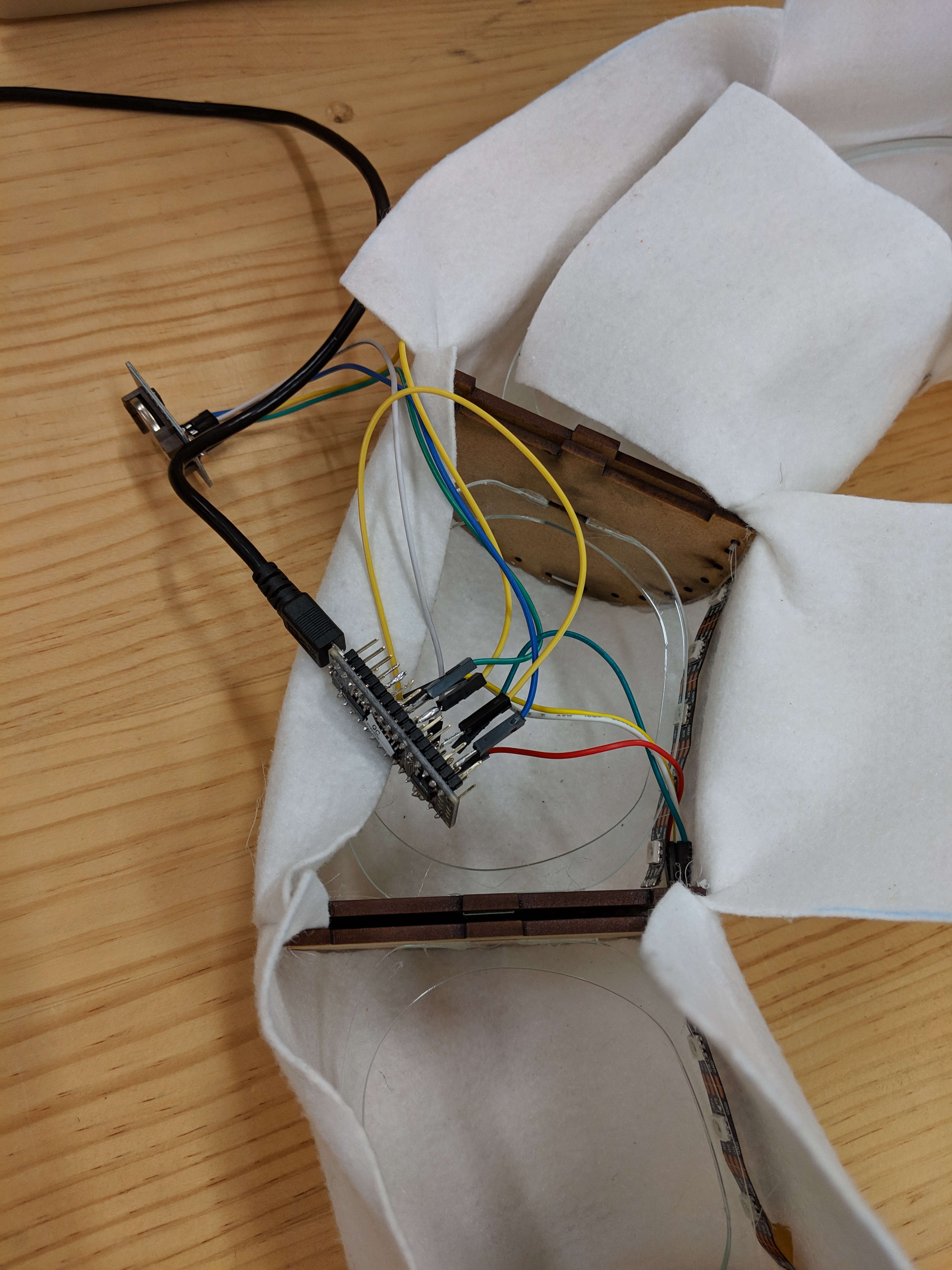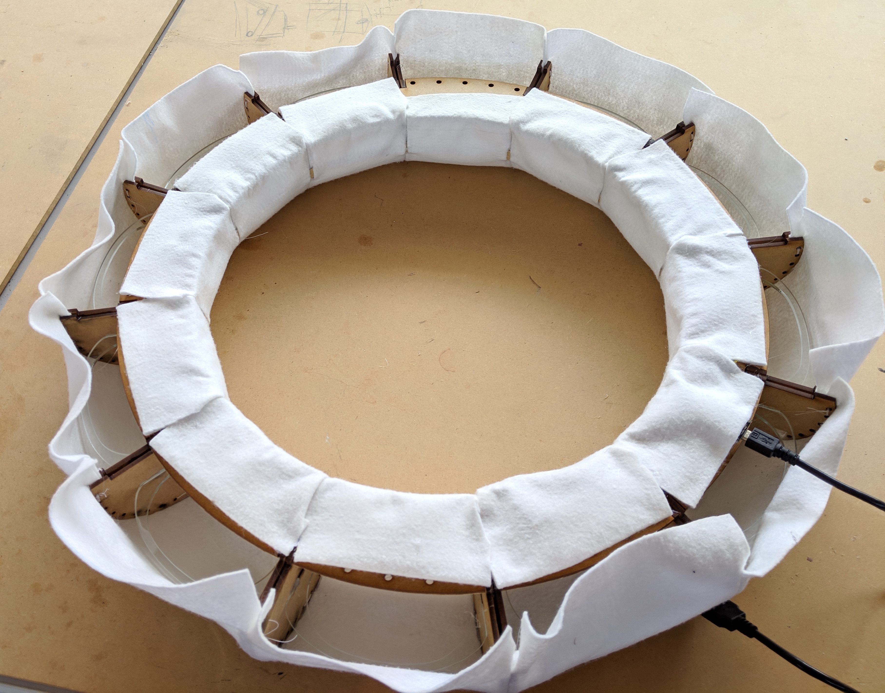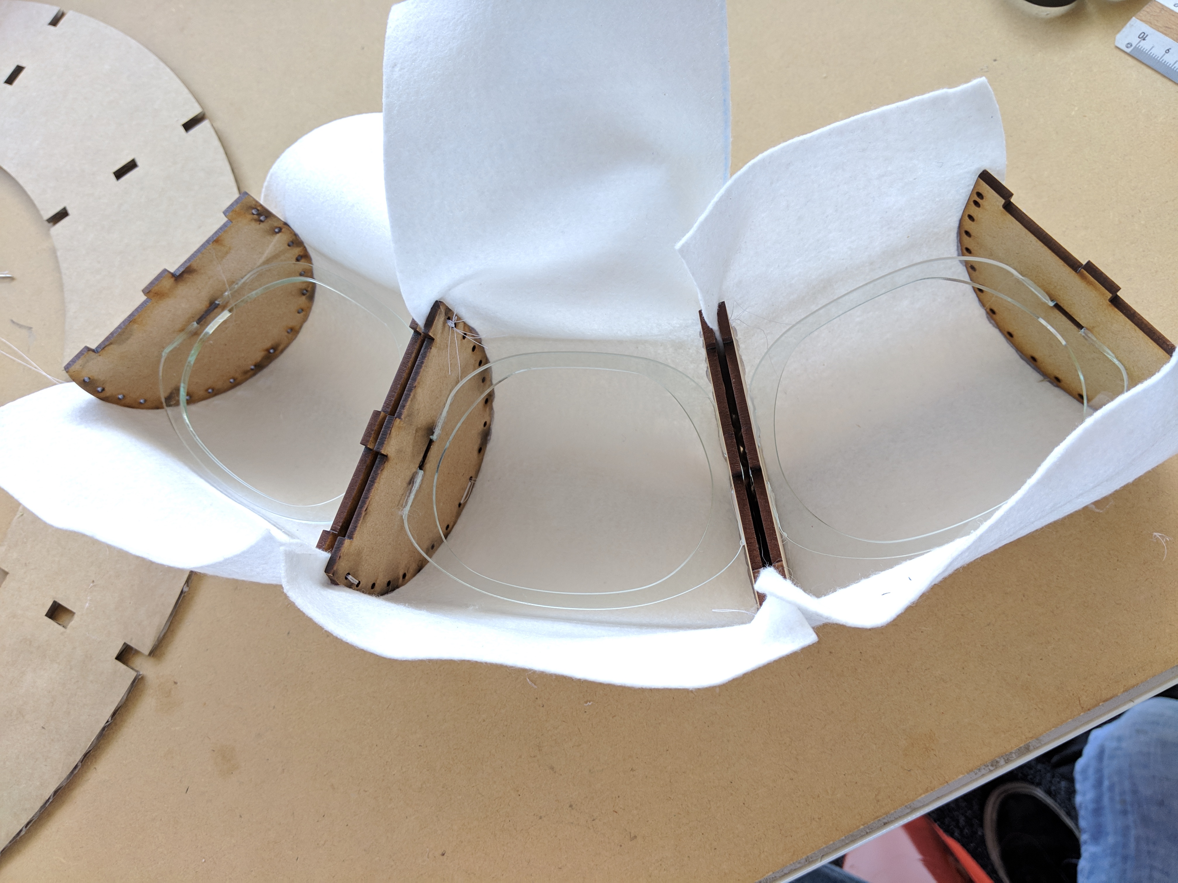 Decided on felt as my final material. Cut the spacing pieces from clear acrylic , hoping the light will shine through