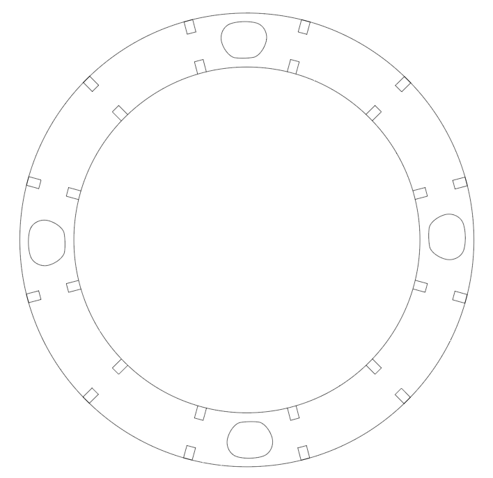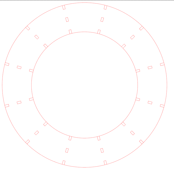 Because we are not allowed to cut MDF on the laser cutter in the Fab lab and the original design for the back of the clock would’ve been too big for any laser cutters in the 3D workshop I had to alter the design slightly. To problem solve I dedcided to make the back of the clock from seperate pieces. Here is the inner piece. It has a cut-out every third section that will allow me to push the fabric back into place later, should it become dented or sunken.
