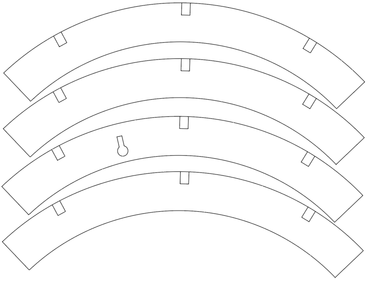 These piececs make up the outer section of the back of the clock. The lock shaped cutout enables the clock to be hung on the wall with a drawing pin.