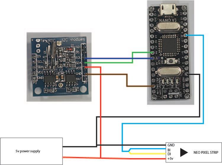 After struggling with our code for too long Keiran and I went to Massey music department and got some advice from a friendly masters student who also helped us solder on the legs of our Arduinos so that we could wire them up easier using a bread board (she explained to us how this worked as well. We wired the Arduino and RTC together following the instructables post below: https://www.instructables.com/id/Arduino-Nano-DS1307-Real-Time-ClockRTC-With-Visuin/